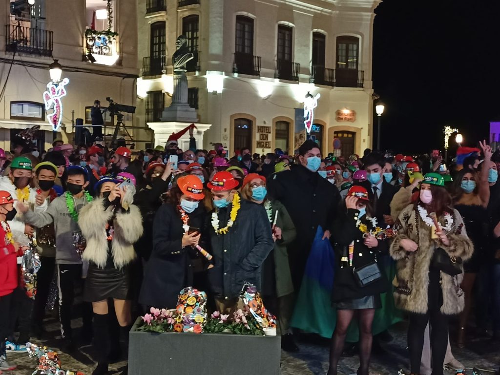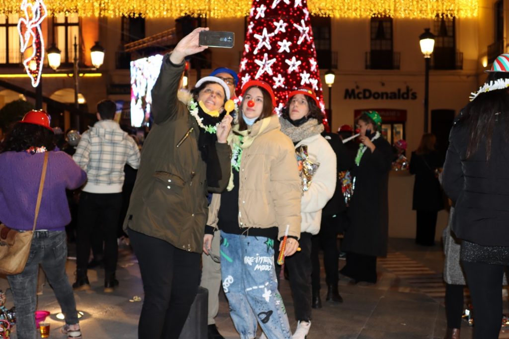 Cientos de personas se han dado cita en la plaza de España esta Nochevieja con motivo de la programación en directo de Canal Sur Televisión
