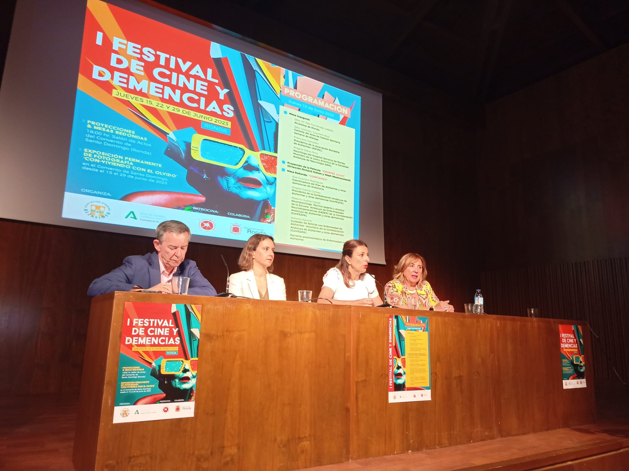 La programación se ha estructurado en tres partes, simulando un viaje por las fases de la enfermedad de Alzheimer, con mesas redondas en las que toman parte profesionales de la salud, responsables políticos, cuidadores, voluntarios e incluso personas a las que se les ha diagnosticado esta dolencia. Al acto inaugural asistió la alcaldesa de Ronda en funciones, María de la Paz Fernández, quien elogió la labor desarrollada por AROAL ayudando tanto a pacientes como a sus familias. Igualmente, la regidora tuvo palabras de reconocimiento para la directora del festival, la doctora Ollero. Un reconocimiento al que se sumó también la presidenta de AROAL, Paqui González, poniendo también el acento en la colaboración encontrada tanto por parte del Área Sanitaria como del Ayuntamiento de Ronda. Por su parte la directora del festival, la doctora Ángela Ollero, agradeció la implicación de todos los participantes en las tres mesas redondas organizadas tras las proyecciones. En representación del Área Sanitaria de la Serranía estuvo también el doctor Andrés Morillo.