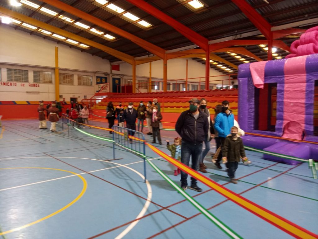 Cientos de familias rondeñas han pasado ya esta mañana por la cabalgata estática situada por la delegación de Fiestas del Ayuntamiento de Ronda en las instalaciones deportivas de El Fuerte para que los pequeños puedan dar la bienvenida a los Reyes Magos siguiendo el protocolo marcado por la crisis sanitaria.