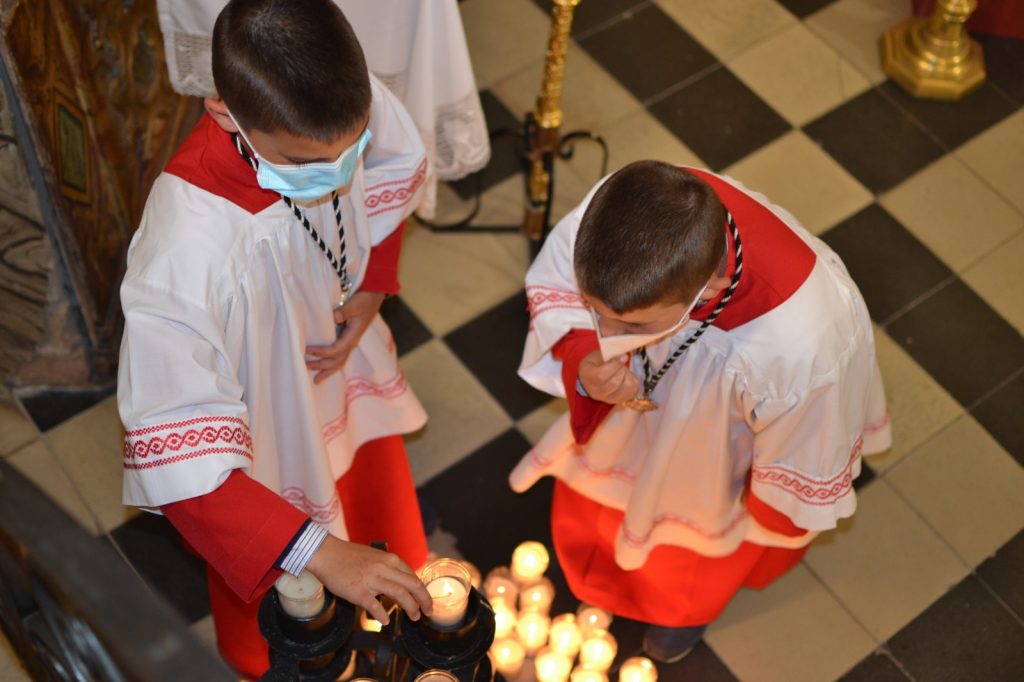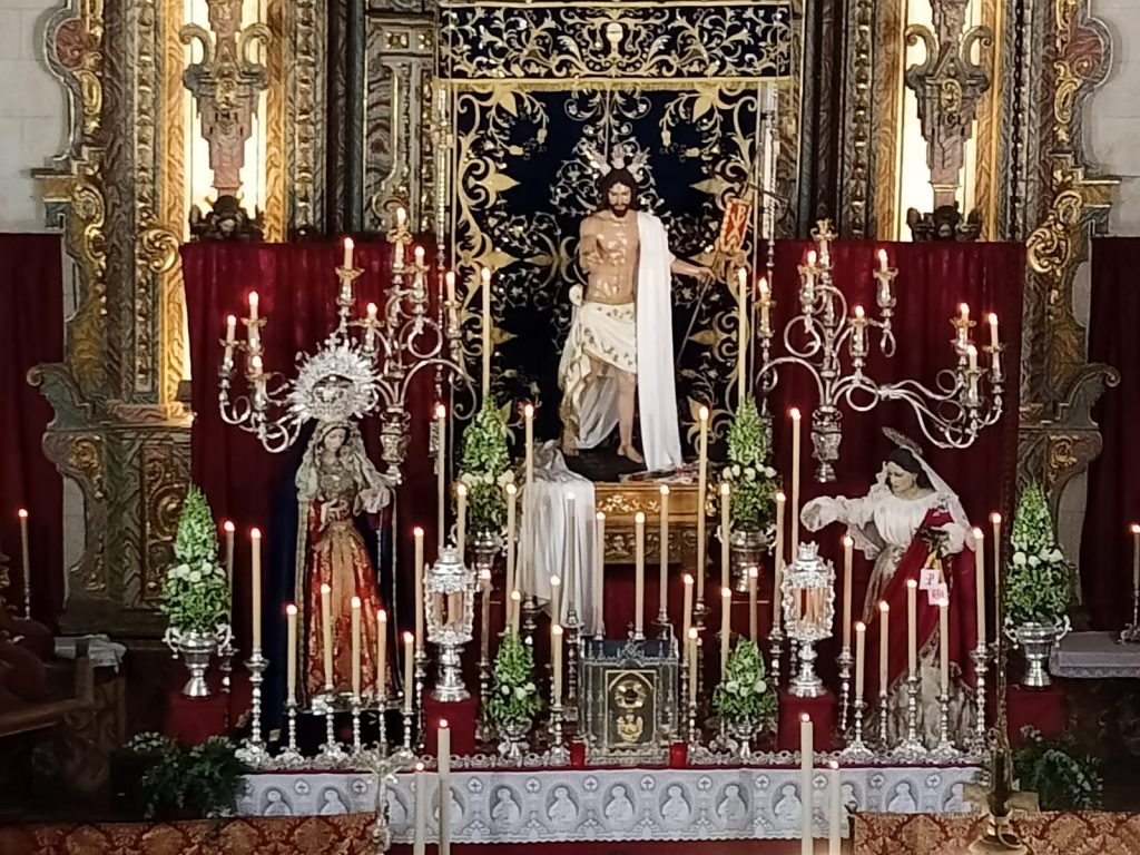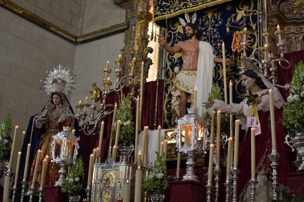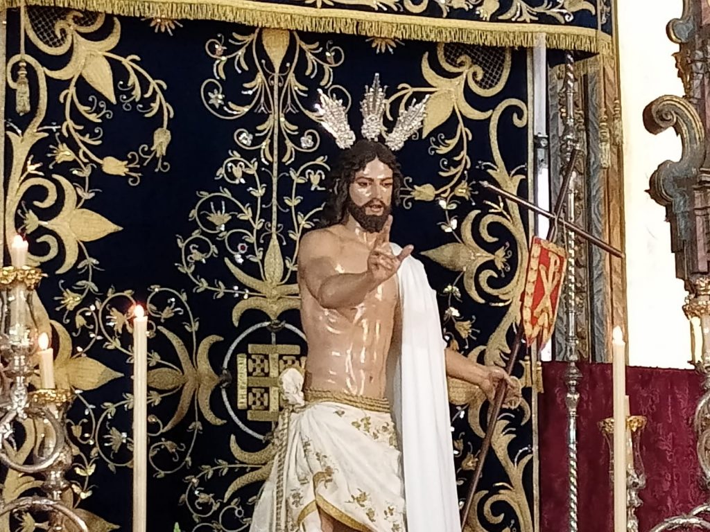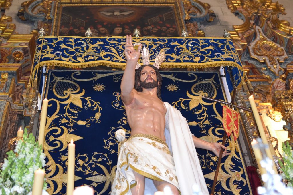 La Iglesia del Espíritu Santo ha sido el escenario del acto litúrgico con el que se ha puesto el punto y final a la Semana Santa más atípica que se recuerde marcada por las circunstancias derivadas de la crisis sanitaria. El Cristo Resucitado y la Virgen de Loreto han sido los protagonistas de este Domingo de Resurrección en un acto que ha servido para reconocer la labor de todos los cofrades que han hecho posible que se hayan vivido momentos muy emocionantes y que se haya podido disfrutar de la cercanía de los titulares de las hermandades, como nunca se había hecho en Semana Santa.
