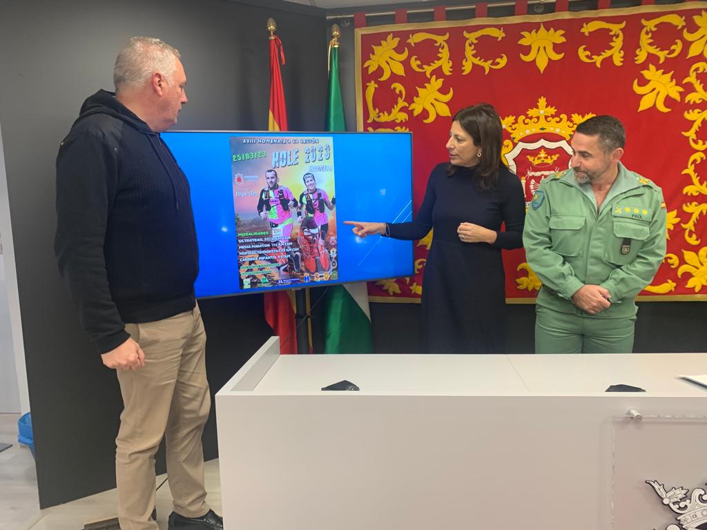 En la presentación de la cita, que tendrá lugar el próximo 25 de marzo, han estado presentes la alcaldesa, María de la Paz Fernández, el delegado de Deportes, Carlos Mirasol, y el coronel Cuarto Tercio de la Legión Alejandro Farnesio, Francisco Paúl. La mandataria ha recordado que “la iniciativa nació como homenaje a los militares en un año que estaban de misión en el extranjero y este año se repite esta circunstancia, por lo que entendemos que hay mucha intención de participar entre profesionales y aficionados de toda Andalucía, e incluso de otras comunidades”.