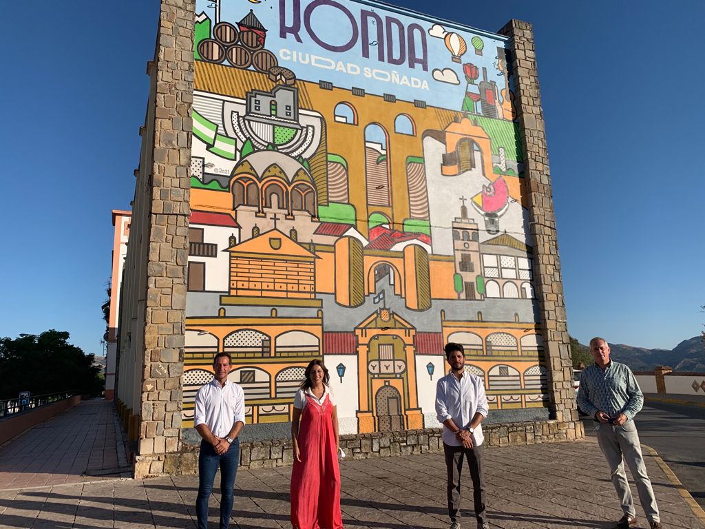 El Ayuntamiento de Ronda, a través de la delegación municipal de Turismo, ha presentado hoy de forma oficial un nuevo mural que viene a engrosar los espacios dedicados al arte urbano en diferentes puntos de la ciudad que pretenden crear una ruta como nueva alternativa turística y que se une a los realizados por el artista ‘Okuda’ en el edificio de la actual estación de autobuses.