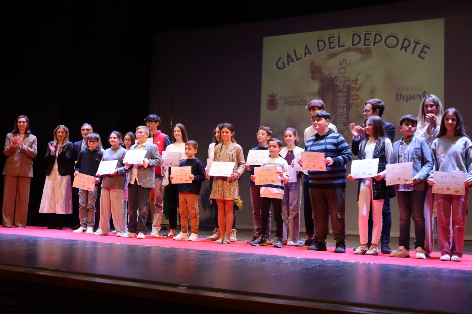 El Ayuntamiento de Ronda ha querido reconocer públicamente los éxitos y la trayectoria deportiva de más de 120 rondeños en la XV Gala del Deporte, que se ha celebrado en el Teatro Municipal Vicente Espinel. Esta cita, organizada por el área municipal, se han entregado reconocimientos a disciplinas de lo más variadas, desde gimnasia rítmica a bushido, pasando por pádel, atletismo o bádminton.