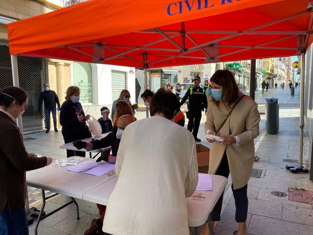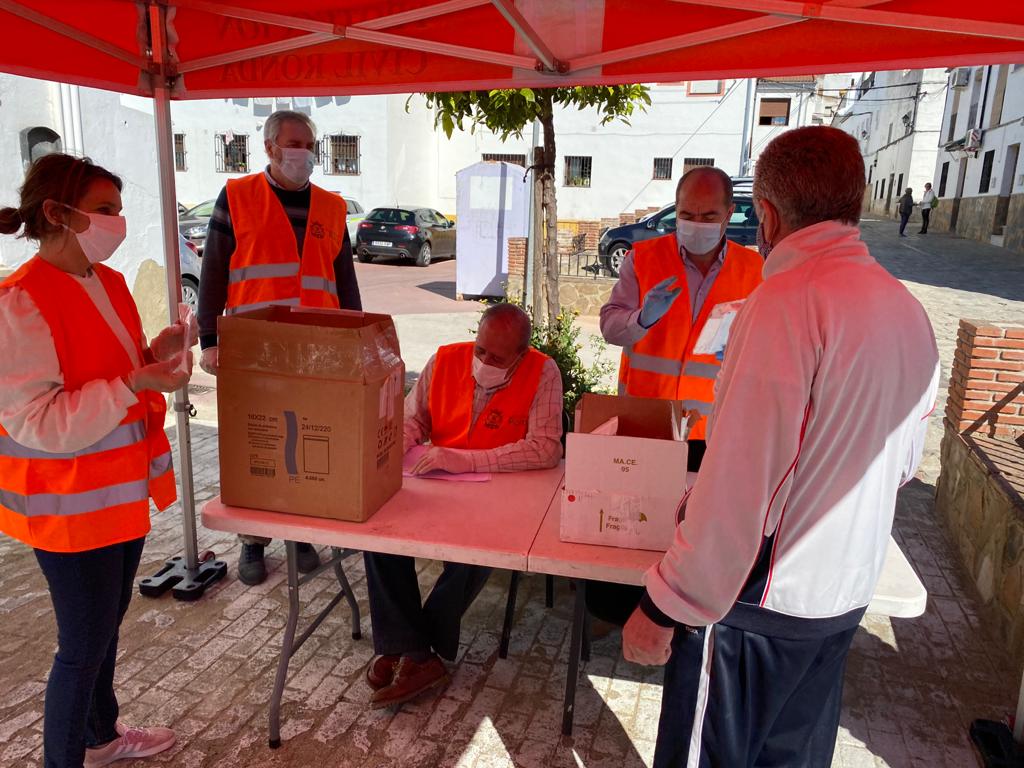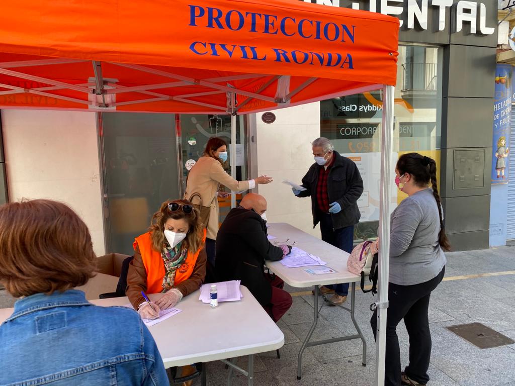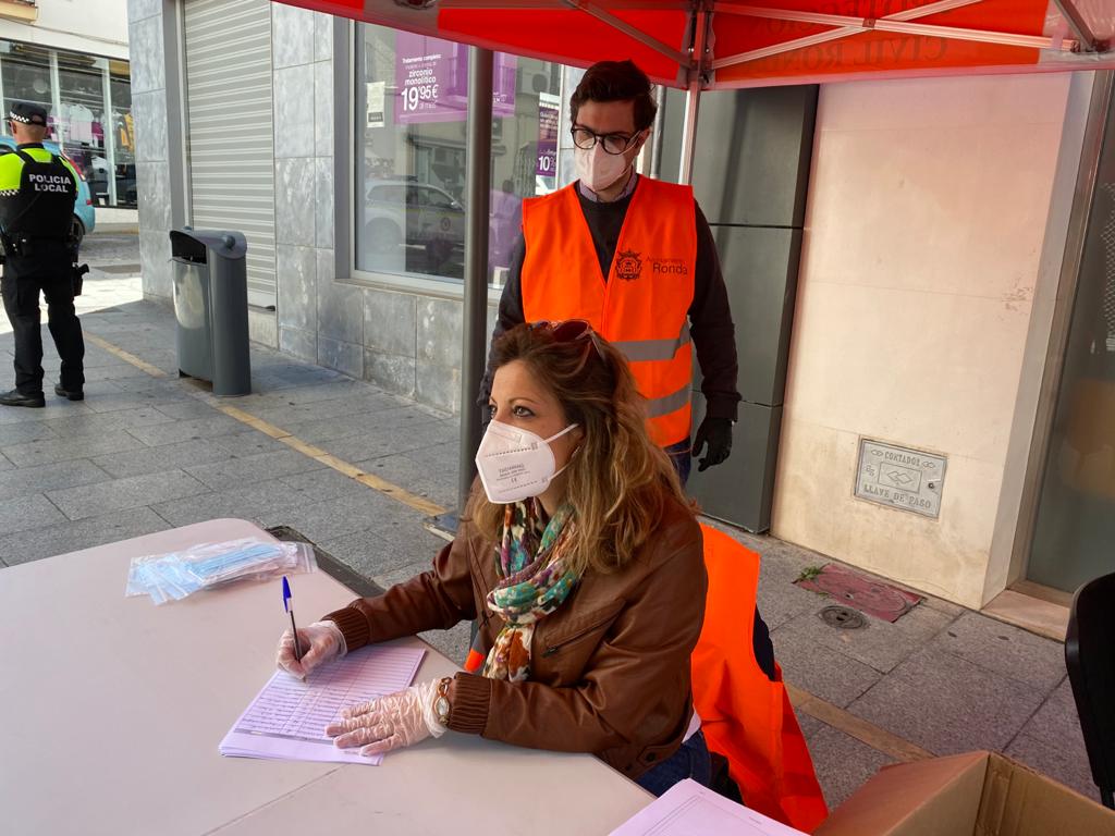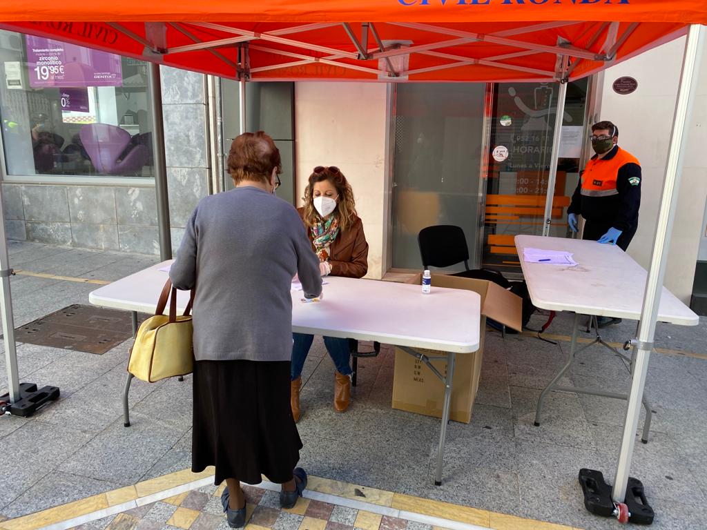 El Ayuntamiento de Ronda ha continuado en la jornada de hoy con la campaña de reparto de mascarillas a los ciudadanos para garantizar que todos los rondeños cuenten con este material de protección. En esta ocasión se ha situado un punto de entrega en la calle Cruz Verde, para los vecinos de la zona centro, y otro en el centro cívico ‘Juan Carlos I’ para los residentes en el barrio de Padre Jesús y aledaños.