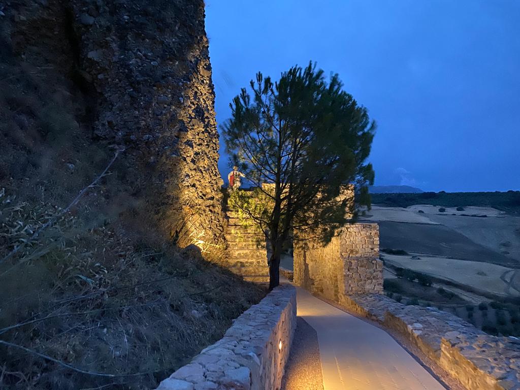 La nueva iluminación ha situado puntos de luz adecuados a tan singular entorno, desde el inicio del camino, en la plaza María Auxiliadora, hasta la Puerta del Viento.