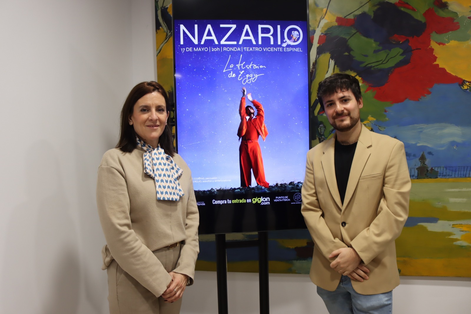 La delegada municipal de Cultura, Rebeca Muñoz, ha presentado esta mañana el espectáculo con el que el artista rondeño Nazario Guerrero dará a conocer su primer disco en nuestra ciudad. Se trata de ‘La historia de Ziggy’, cuyas canciones interpretará en directo el próximo 17 de mayo, a las 20.00 horas en el teatro municipal ‘Vicente Espinel’.