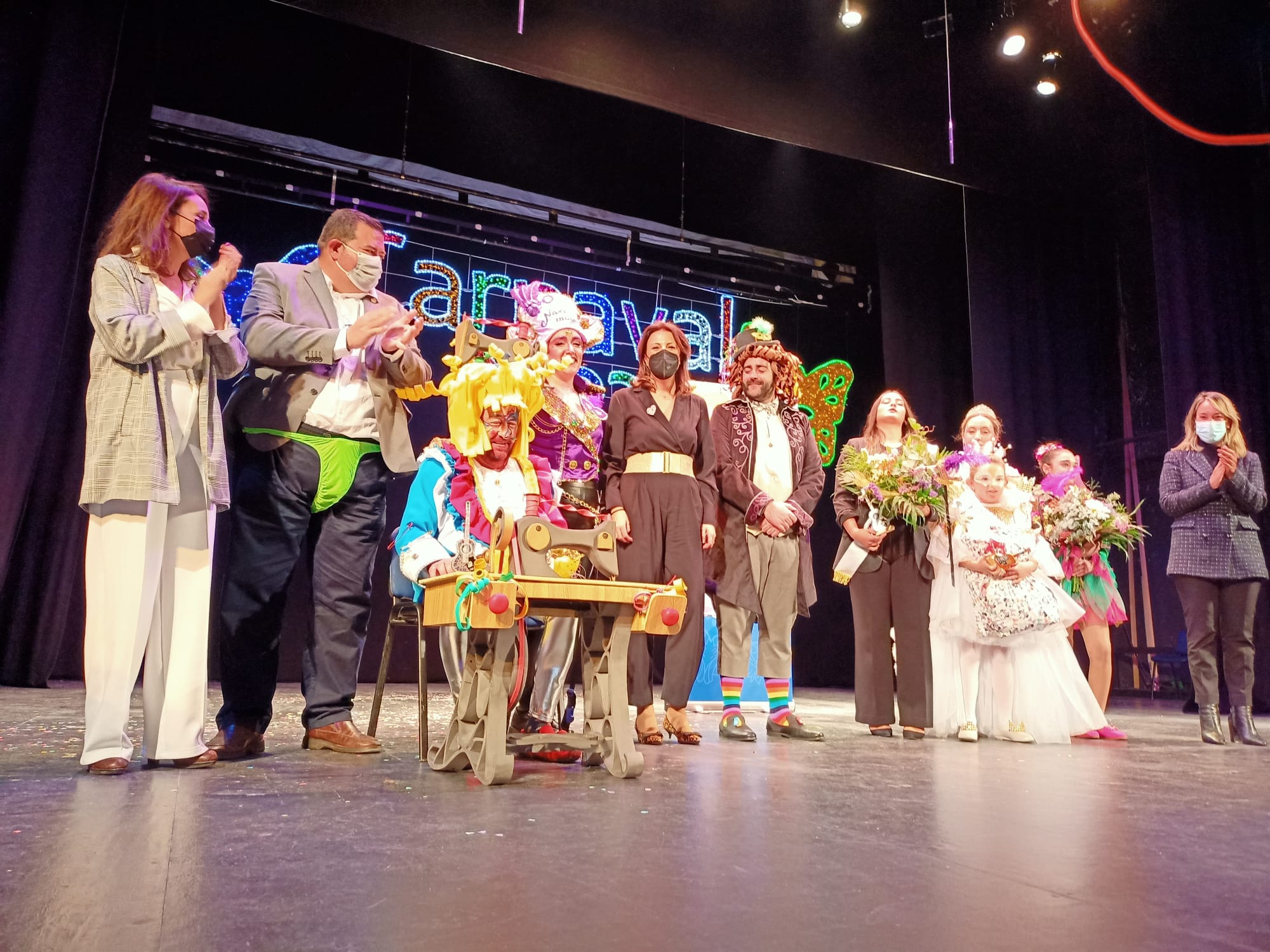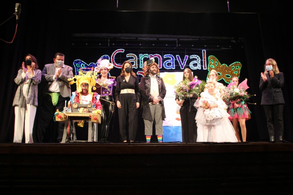 Tras el pregón, la alcaldesa Maripaz Fernández subió al escenario para felicitar a la pregonera y hacerle entrega junto a Miguel Berrocal, miembro de la Asociación Cultural Carnavalesca, de un recuerdo. La regidora agradeció a todos los que han trabajado para recuperar el Carnaval tras el parón en 2021 por la pandemia de Covid. “Es difícil después de lo que hemos vivido, es difícil, pero es verdad que debemos ser lo que fuimos, como dice nuestro Himno de Andalucía, e ir poco a poco abriendo las puertas a la alegría y a recuperar nuestras tradiciones”, dijo la alcaldesa.