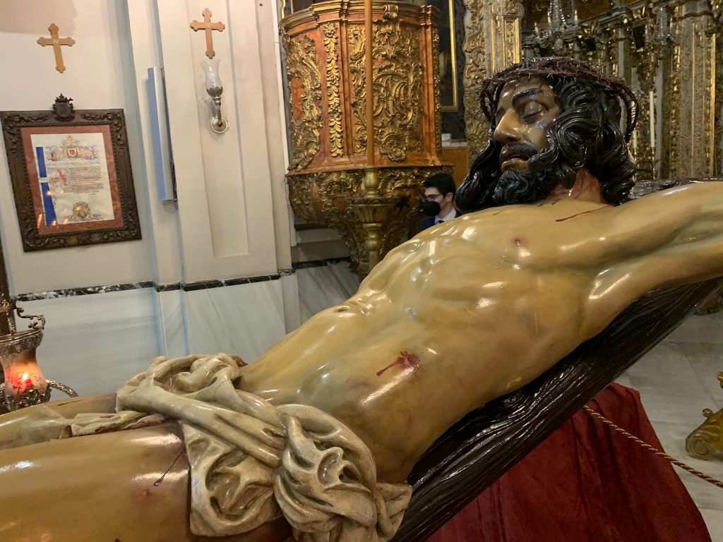 Las Hermandades de Paz y Caridad y de la Vera+Cruz, del Ecce-Homo y de Padre Jesús, han realizado sus actos penitenciales en los templos siguiendo todos los protocolos sanitarios y con muchas personas que han esperado en algunos casos colas para acceder a las iglesias y mostrar sus respetos a los titulares.
