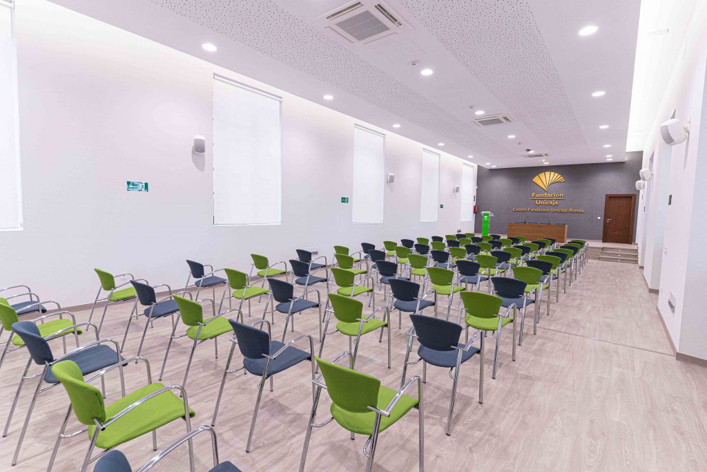 El Centro Fundación Unicaja de Ronda tiene su entrada principal en la calle Sor Ángela de la Cruz y forma parte de una misma manzana,en pleno casco histórico,que también engloba el museo dedicado a la obra de Joaquín Peinado y el conservatorio profesional de música ‘Ramón Corrales’. Su rehabilitación ha dotado al edificio de varias salas polivalentes y oficinas, además de la adecuación de un patio exterior.