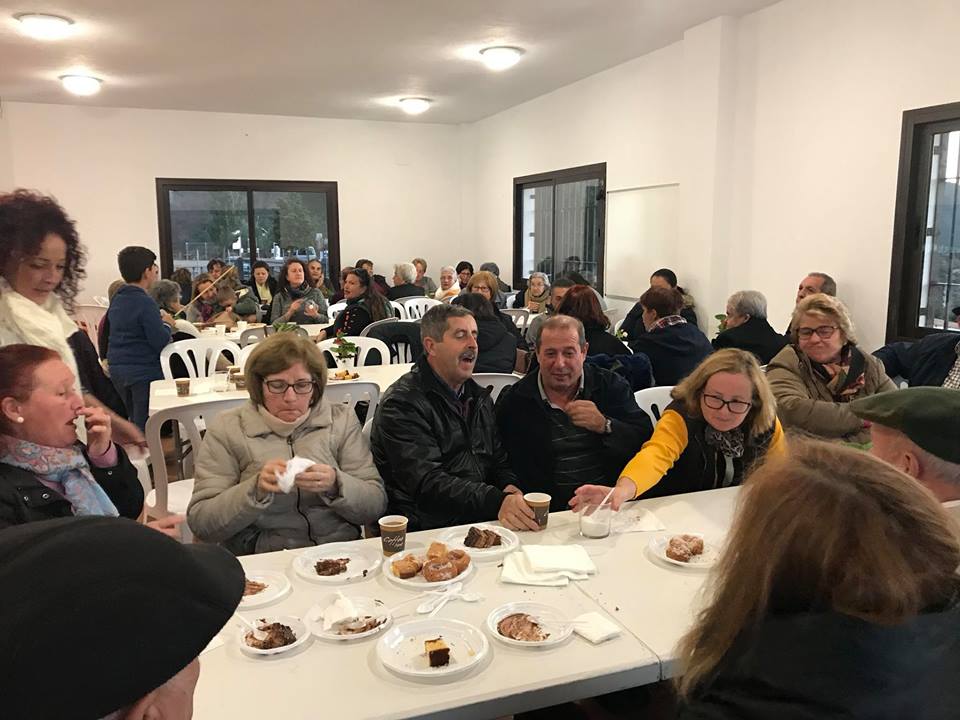 Para comenzar, el 14 de diciembre se organizó una merienda colectiva en la “nave alta” de la localidad, punto donde se dieron cita numerosas personas que compartieron con familiares y amigos una tarde agradable en la que no faltaron los dulces típicos elaborados por las propias vecinas del pueblo. Tras ello, todos los asistentes realizaron el ya tradicional pasacalles al son de villancicos, para lo que los vecinos fueron tocando zambombas, panderetas, e incluso un acordeón, lo que sirvió para empezar a contagiar al pueblo del espíritu navideño.
