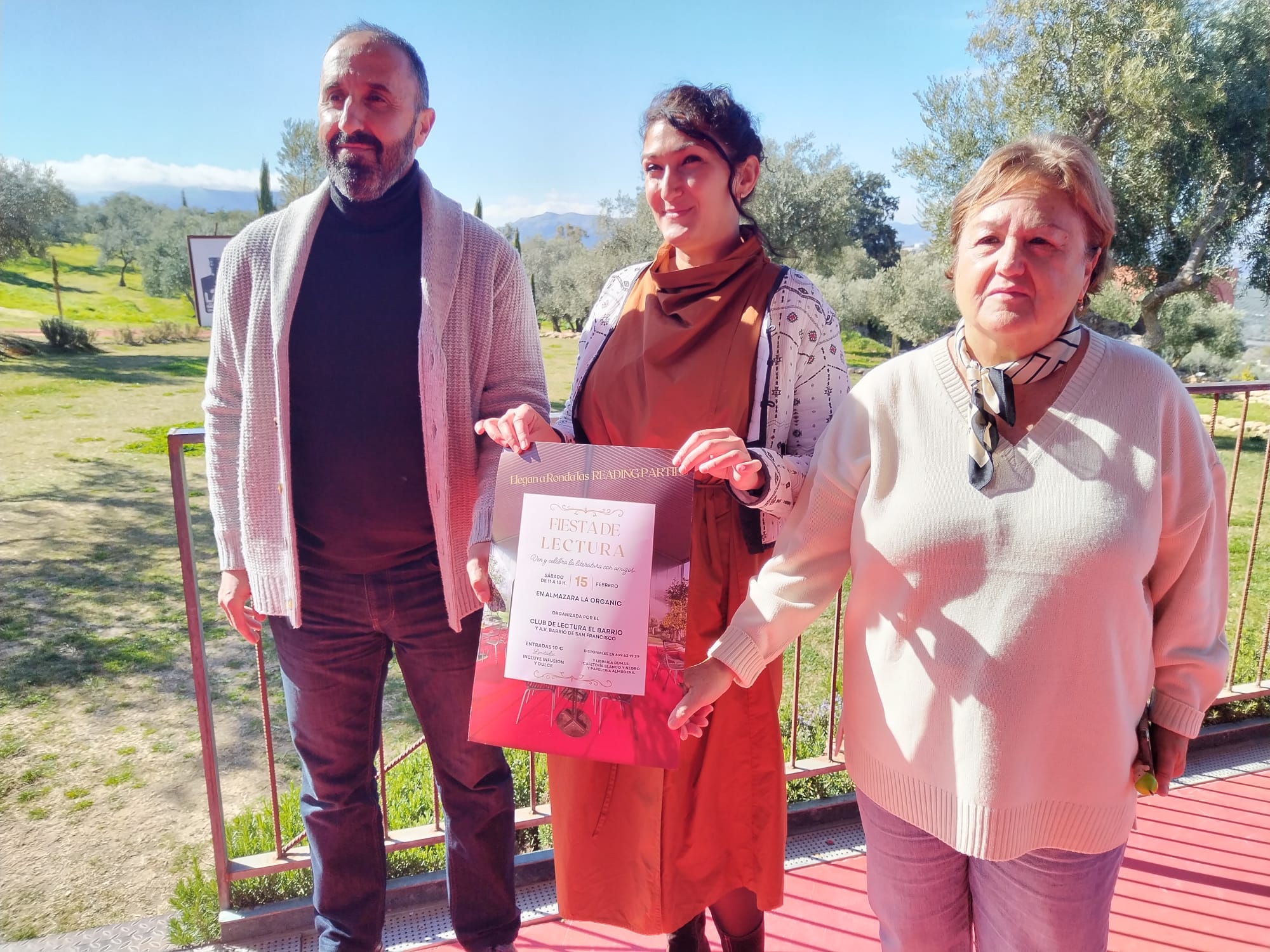 Junto a Tomás Nevado también ha presentado esta iniciativa María José Castaño, miembro también del club de lectura El Barrio lee, quien ha recordado la trayectoria de este colectivo que echaba a andar hace cuatro años con el apoyo de la Asociación de Vecinos del Barrio de San Francisco. En este tiempo, este club itinerante y con medio centenar de miembros, ha realizado un gran número de actividades como presentaciones de libros con sus autores, encuentros, viajes o incluso han protagonizado un programa de televisión. Castaño ha abogado por la necesidad de la lectura en esta época en la que la información nos inunda a través de la tecnología. Por su parte, Nelly Samper, de La Almazara La Organic, ha destacado el lugar donde se celebrará este evento cultural como un lugar idóneo para la iniciativa puesta en marcha por este colectivo.