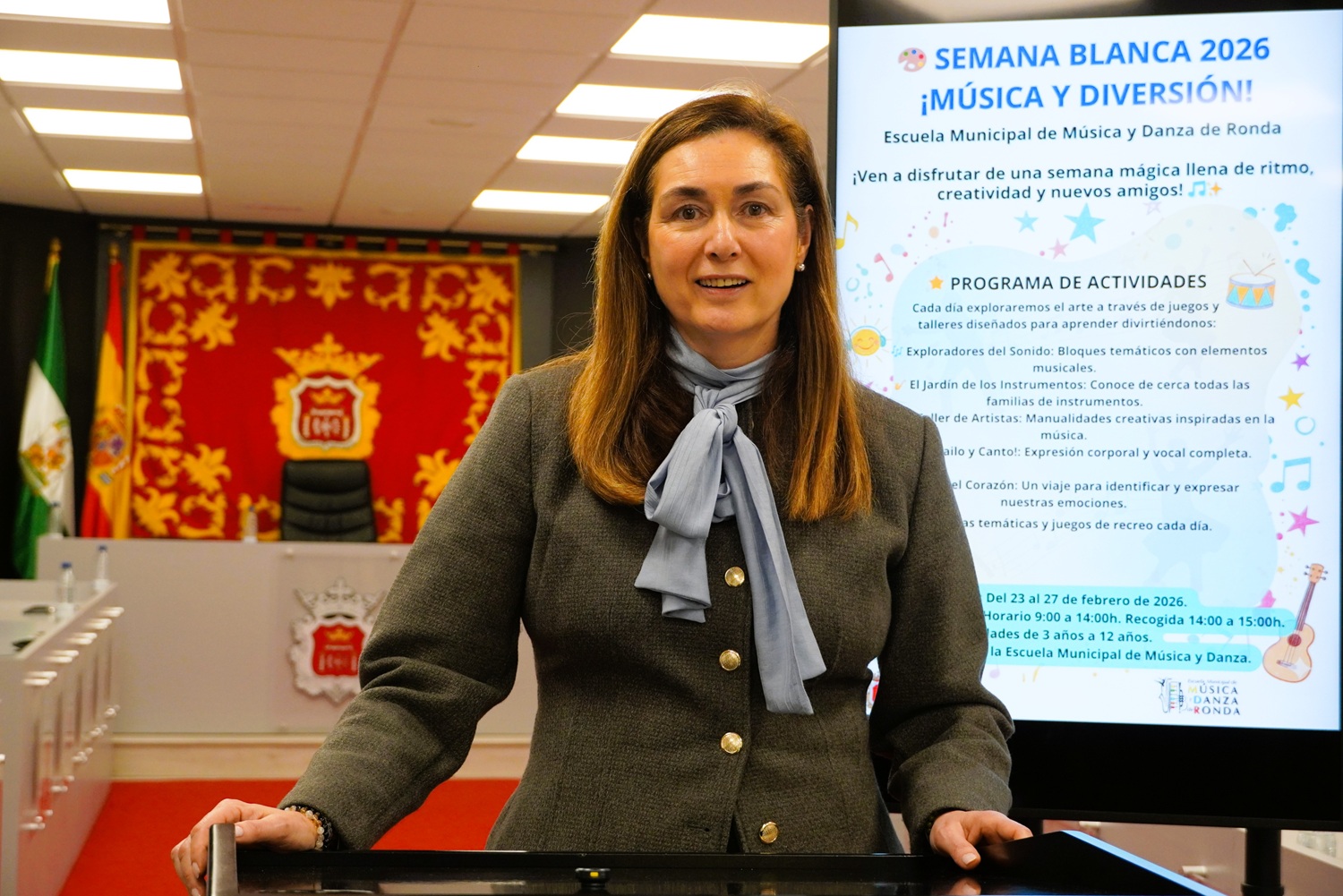 La delegada municipal de Educación, Cristina Durán, ha dado a conocer las actividades que se van a desarrollar en la Escuela Municipal de Música y Danza con motivo de la Semana Blanca. Así, ha informado que, bajo el título de ‘Música y Diversión’ se ha preparado una amplia programación para niños y niñas de entre 3 y 12 años y que se prolongará del 23 al 27 de febrero.