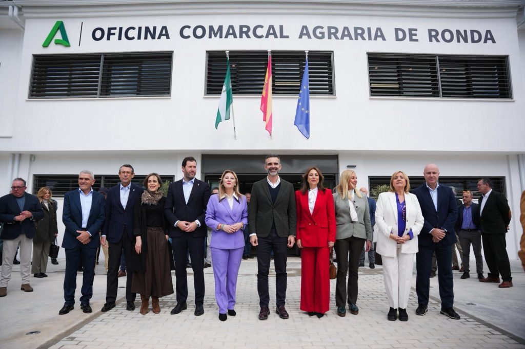 El consejero de Agricultura, Pesca, Agua y Desarrollo Rural, Ramón Fernández-Pacheco, y la consejera de Economía, Hacienda y Fondos Europeos, Carolina España, han inaugurado este lunes la nueva sede de la Oficina Comarcal Agraria (OCA) de Ronda, en la provincia de Málaga. En el acto ha intervenido la viceconsejera de Agricultura, Consolación Vera, destacando que las OCAs representan “la administración a pie de campo”, la que responde en el día a día y “cuando surgen los problemas reales de agricultores y ganaderos”. “Ante los daños de las DANAs, o frente a emergencias de sanidad vegetal y animal como la lengua azul o la gripe aviar, estas oficinas están siempre en primera línea de apoyo al campo andaluz”, ha señalado.