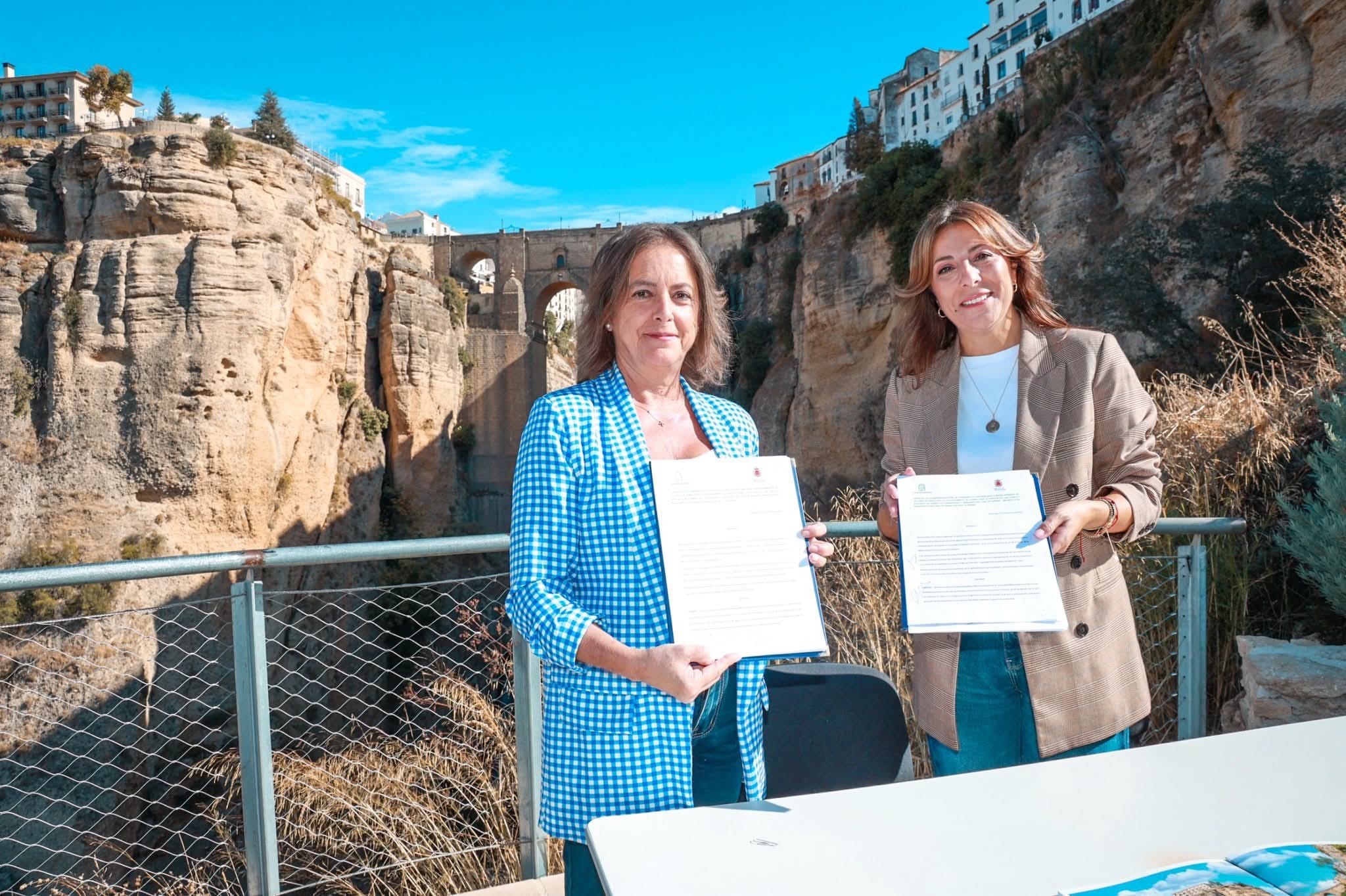 La consejera de Sostenibilidad y Medio Ambiente de la Junta de Andalucía, Catalina García, y la alcaldesa de Ronda, Maripaz Fernández, han firmado este lunes un convenio de colaboración para la gestión del uso público asociado al Camino del Desfiladero y Garganta del Tajo de Ronda, ubicado en el Monumento Natural de Andalucía Tajo de Ronda.