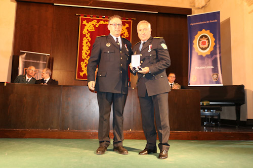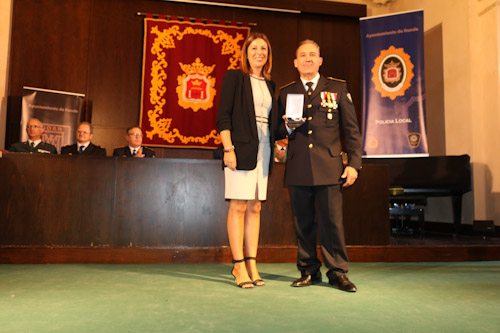 Posteriormente se ha desarrollado un acto institucional en el Convento de Santo Domingo, presidido por la alcaldesa de Ronda, Mª Paz Fernández, donde se han entregado diferentes reconocimientos. De esta manera se ha impuesto la Cruz de dedicación al servicio policial en categoría plata, por sus veinticinco años de servicio a Miguel Ángel Aranda, Manuel Cuevas, José Gamarro, José María Gude, José Ignacio Rodríguez y Miguel Ángel Juarros. Por sus treinta años de servicio se ha reconocido con la Cruz al servicio policial en categoría oro a Juan Luis Ponce, José Antonio Benítez, Francisco Javier Gutiérrez y Francisco José Cañestro. En el acto también se concedido la Cruz al mérito policial con distintivo rojo a Juan Terroba y con distintivo verde a Cándido González.