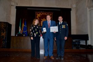 DIPLOMA DE FELICITACIÓN, por la actuación en la detención de una persona que estaba perpetrando un robo en un Hotel de la Ciudad portando una pistola que posteriormente se comprobó que era simulada. Este reconocimiento ha sido para Francisco Cañestro Becerra y Antonio Galindo González.