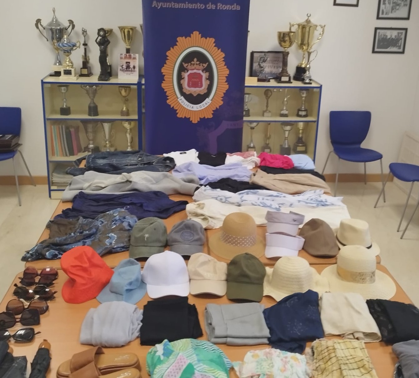 Aranda ha mostrado las prendas que ha ido recopilando la Policía Local, tras requisarlas a los carteristas, que ha ido identificando. “Las usan para dificultar su identificación por las víctimas y testigos de los hurtos”, ha señalado.