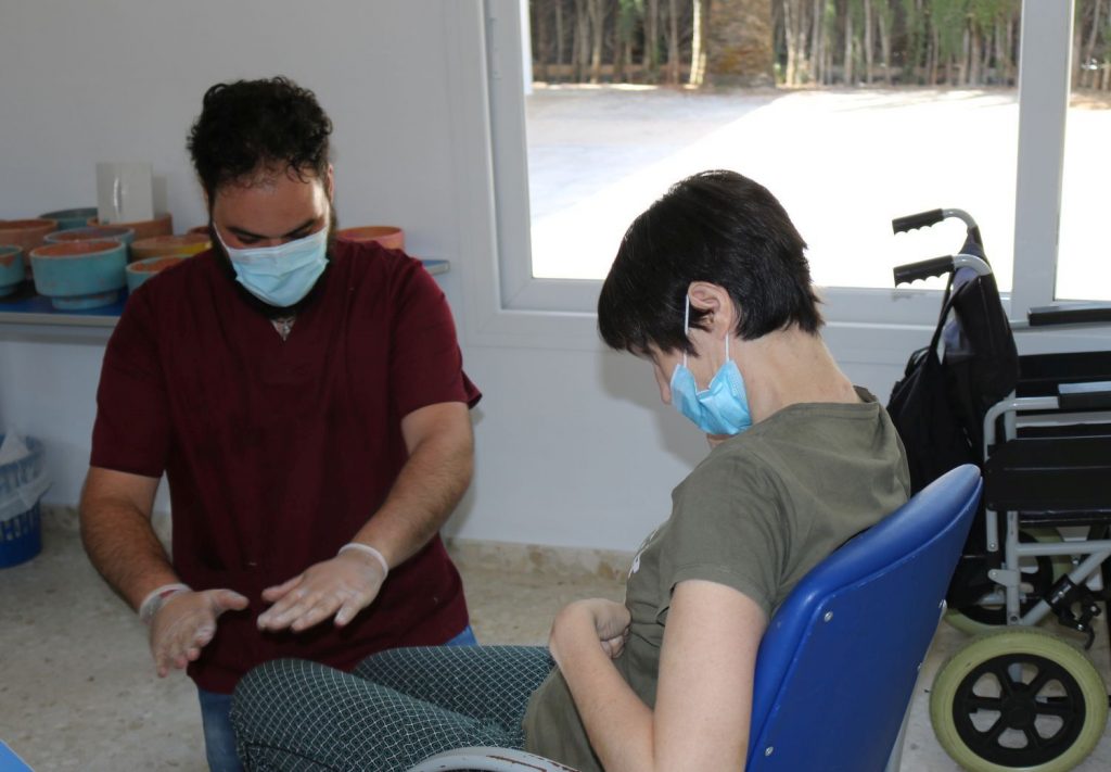 La directora del Centro de Día con Terapia Ocupacional, Remedios Barea, ha explicado que “hoy ha sido día de recuentro para ellos y de vuelta a los talleres en los que venían trabajando: cerámica, repostería y cosmética natural”.