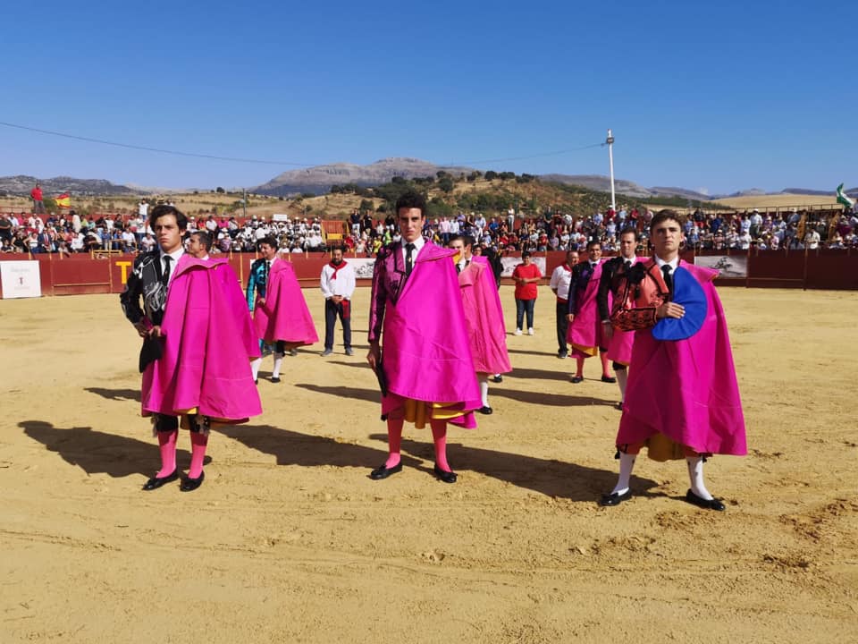 También hoy ha sido el día de celebración del único evento taurino que este año se incluye en la programación de la semana de feria. Organizada por el Ayuntamiento de Ronda y la Escuela Taurina de Ronda en la plaza de toros portátil situada en el recinto ferial, esta tarde se ha celebrado la esperada novillada que ha llenado el coso de público en una tarde donde Moli de Ronda y Joaquín Candelas han salido por la puerta grande tras cortar dos orejas de sus segundos novillos. En el cartel han estado acompañados por Miguel Ángel Ruiz que también ha realizado una brillante actuación en los novillos que le han tocado en suerte de la ganadería de Tauromundo.