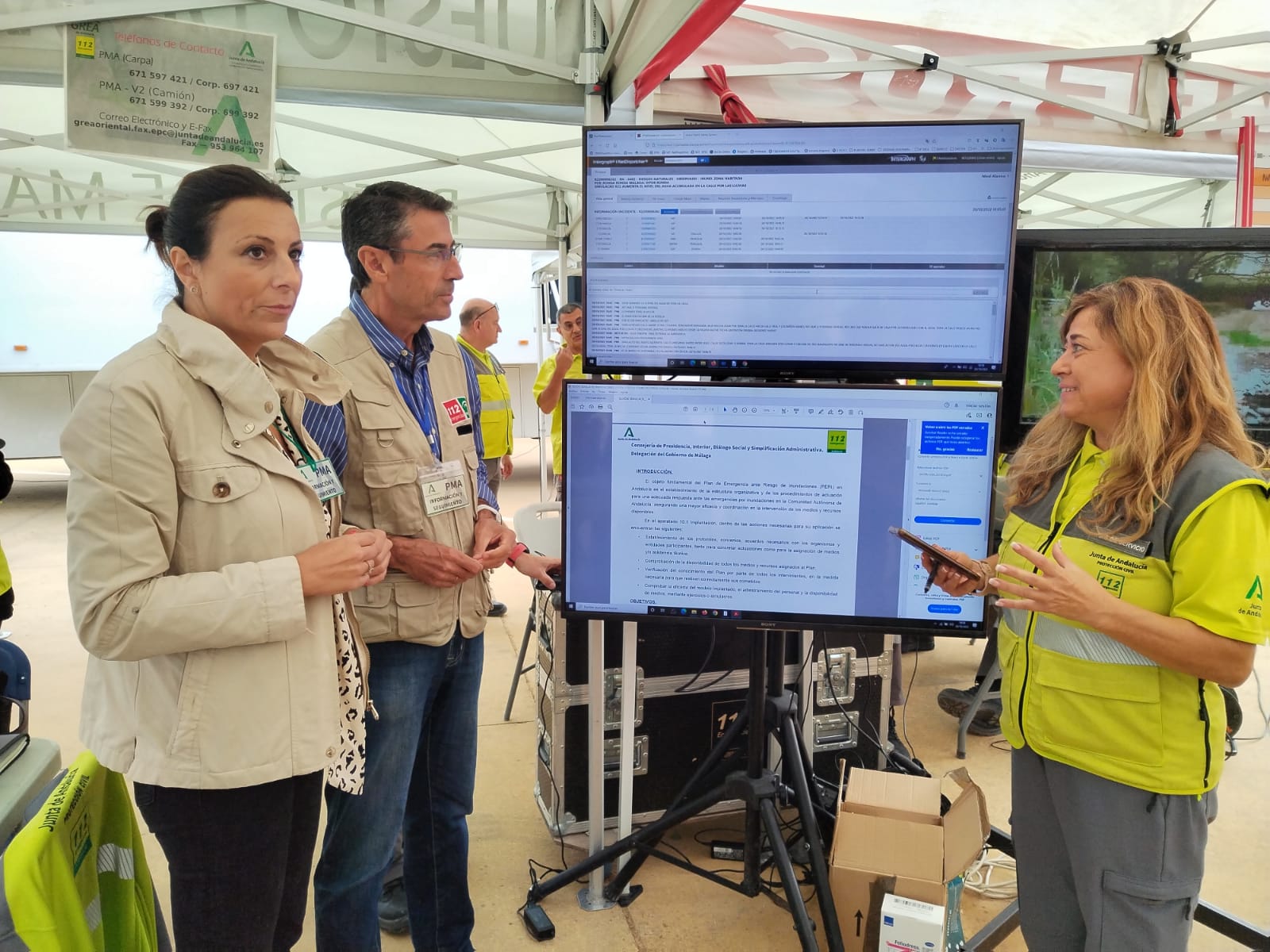 En el puesto de mando avanzado ha estado la alcaldesa de Ronda, Maripaz Fernández, junto al delegado territorial en Málaga de Agricultura, Pesca, Aguas y Desarrollo Sostenible, Fernando Fernández Tapia-Ruano. La regidora ha ido explicando en una comparecencia ante los medios los pasos dados desde el ámbito municipal en este ejercicio que ha calificado de «necesario» recordando que el escenario recreado no es desconocido para Ronda y para la Serranía en referencia a lo vivido en octubre de 2018, cuando una situación atmosférica excepcionalmente anómala provocó la crecida de ríos y arroyos y causó en la zona numerosos daños, todos materiales afortunadamente.
