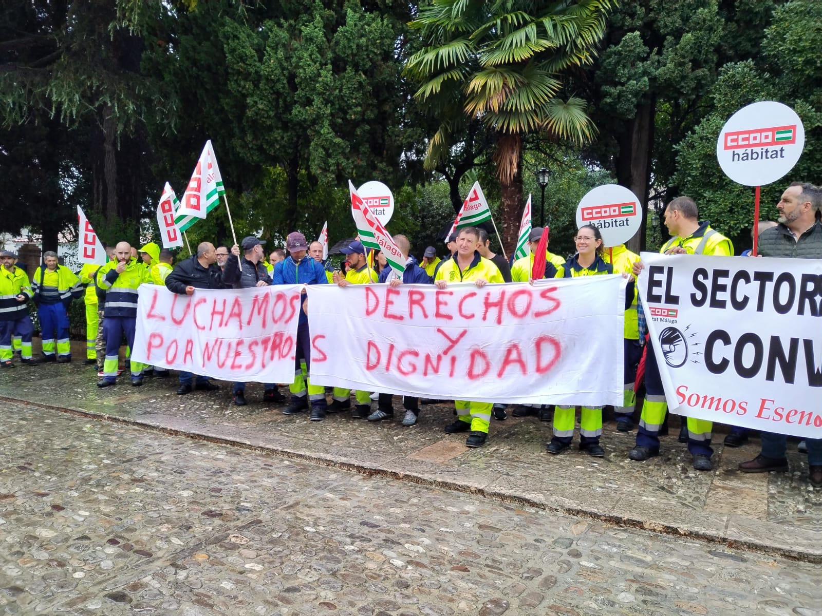 Parte de los trabajadores de SOLIARSA, la empresa municipal de limpieza, realizaron ayer una concentración de protesta ante las puertas deel Ayuntamiento de Ronda, en Duquesa de Parcent, para exigir mejoras sociolaborales.