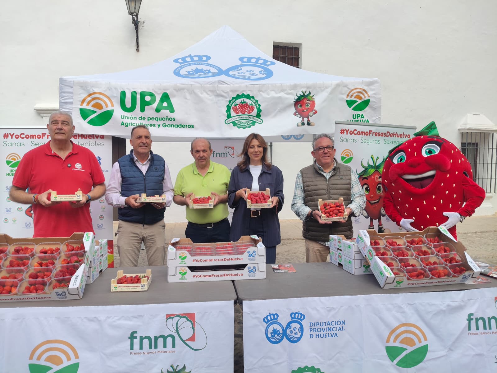 La plaza Teniente Arce de Ronda se ha llenado de color rojo, alegría y salud. La campaña #YoComoFresasdeHuelva, impulsada con la inestimable colaboración de la Diputación de Huelva, ha hecho parada en el municipio malagueño, cuna del andalucismo, como símbolo de identidad, unión y orgullo del territorio andaluz y del trabajo de los agricultores, que cada día se levantan para sacar adelante sus explotaciones, a pesar de las inclemencias meteorológicas y los ruinosos precios en origen que perciben. Los encargados de repartir salud y felicidad a los vecinos y turistas que se han acercado por la Plaza de Toros rondeña han sido los secretarios generales de UPA Málaga, Francisco Moscoso Castillo; y de UPA Huelva, Manuel Piedra Chaves, junto a la alcaldesa, María Paz Fernández Lobato.